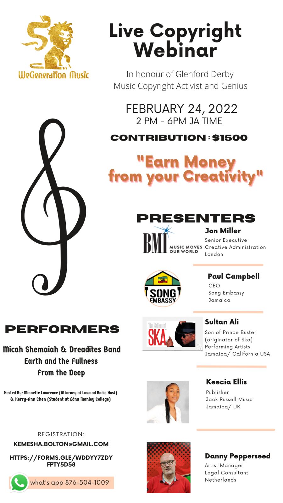 Bes 100 Fm Jamaica On Twitter Register For The Upcoming Copyright Webinar On February 24 2022 Send Us A What S App At 876 2798473 For More Information Https T Co Ox3lmbwdva Twitter